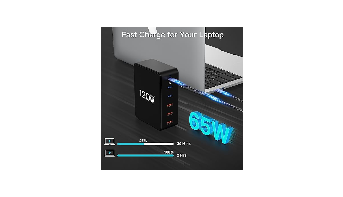 USB FAST CHARGER - USB-C fast charging station whether it\'s 65W fast charging for laptops, 45W fast charging for tablets, 45W/25W fast charging for Samsung, 20W fast charging for iPhones, Airpods, Switch, Android, camera, etc. All of them provide the highest power fast charging in the protocol.