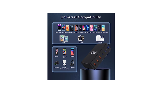 COMPLETE COMPATIBILITY - Our usb charging station is compatible with a wide range of devices, including MacBook Pro/Air 2022 M2, MacBook Air/Pro M1, Huawei MateBook/NoteBook, iPad Air/Pro, Tab A8/S8,iPhone 15/14/13/12/11/X/XR/SE, AirPods, Galaxy S23/S22/S21/S20, Pixel 7/6/5, Steam Deck, Switch. The charging cradle provides fast as long as you are using a device with USB-A or Type-C port, reliable charging support.