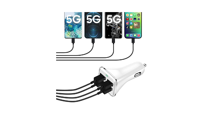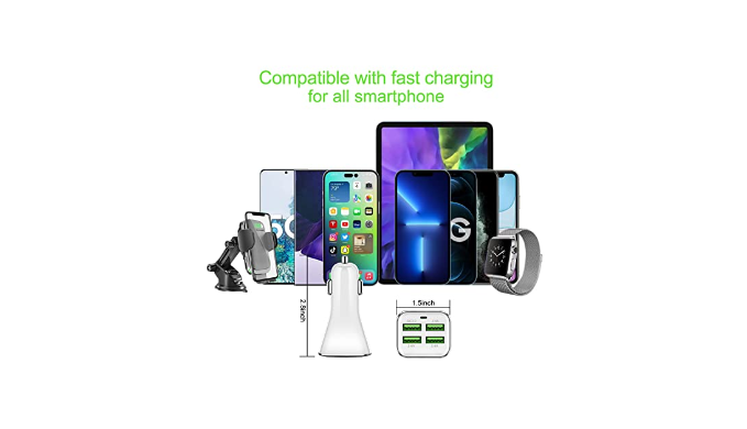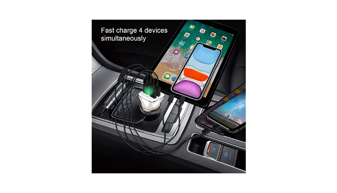 4 Multi USB Ports Car Charger: 4 USB ports output 9.6A 48W support 4 devices fast charging at the same time. The front and back of the car can charge your devices, enjoy the journey with your family.
