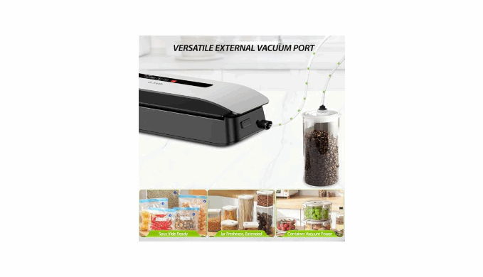 【Sleek, Compact & Quiet Operation】Designed for the modern home, its slim profile fits easily into any kitchen drawer, saving valuable counter space. The low noise motor operates quietly, so you can preserve food without disturbing your family. The unit is packaged with recyclable materials, reflecting a commitment to both style and sustainability