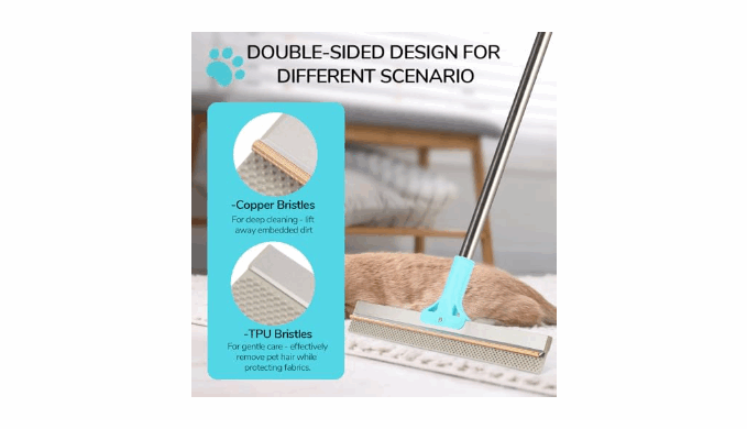 Innovative Dual Rake Teeth: Features metal & silicone rake teeth. Metal teeth deep-clean carpets to remove embedded pet hair, while silicone with small bumps picks up fur gently without scratching fabrics, tiles, or floors.