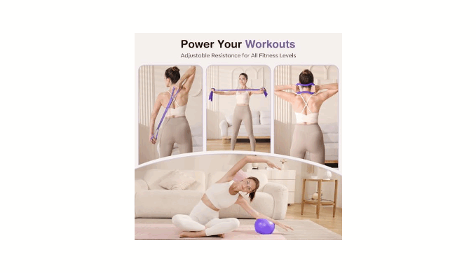 [Full-Body Training – 15 Mins a Day Works] Maximize your training efficiency! Target every major muscle group – arms, legs, abs, glutes, and back – with the versatile Pilates ring, exercise ball, and resistance bands. This versatile set is designed for effective, short home workouts that deliver visible toning and strengthening results fast