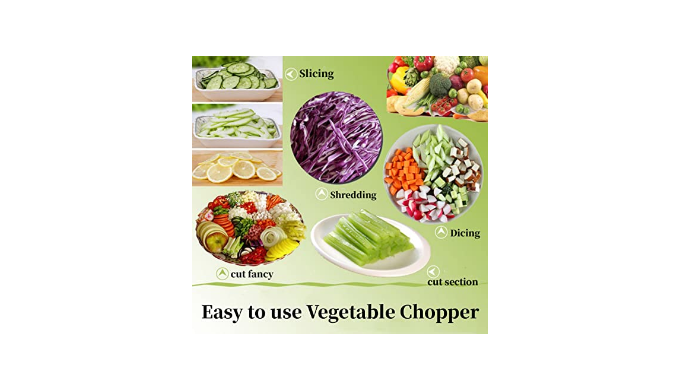 Superior quality: The multifunctional vegetable chopper and slicer chop, dice slice or grate.This vegetable chopper is a practical kitchen tool,the vegetable chopper offers multiple functions in one highly versatile kitchen gadget.The Onion Chopper is made of top quality materials such as high quality stainless steel blades and food grade materials. The vegetable chopper can cut most types of vegetables and fruits.