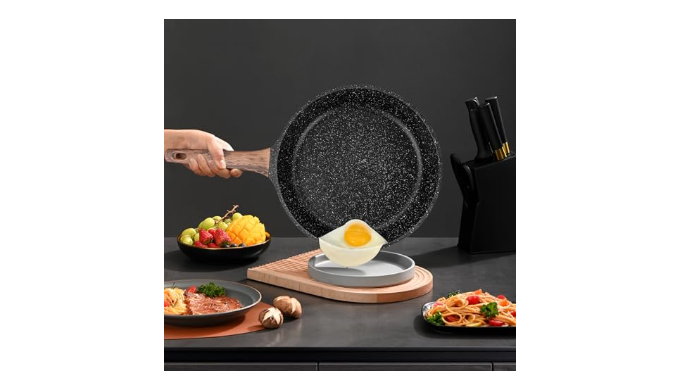 【11 inch Granite Non Stick Coating Frying Pan Skillet】What Is A Good nonstick Pan? Non-stick performance is the key. Compared to other ordinary non-stick pans, VERMONGA\'s nonstick set adds 4 layers of non-stick coating, which means that the frying pans can better demonstrate long-lasting non-stick. Less oil or butter for cooking will release the food easily. Ideal for every cooking master.