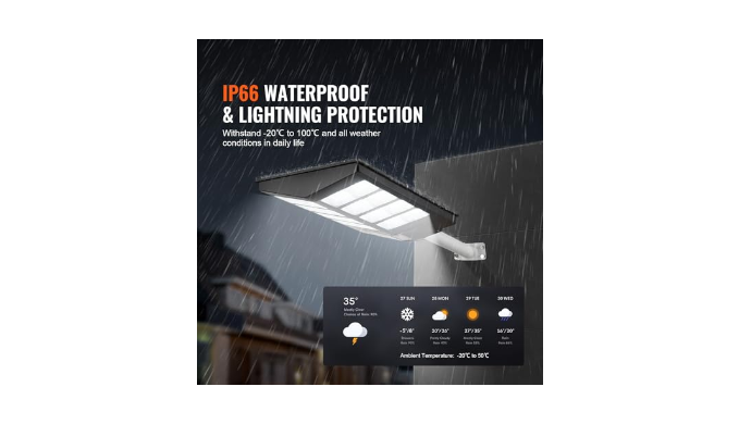 Durable & Waterproof: Crafted from high-strength PC/ABS materials, our street lights solar powered boast an IP66 waterproof rating. They can withstand rain, wind, snow, ice, and extreme temperatures, making them ideal for all your outdoor spaces.