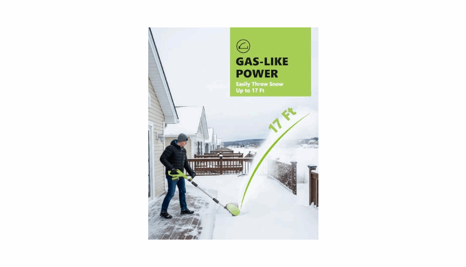 Quiet Yet Powerful: The VIBEKIO cordless snow shovel runs on a 20V battery, providing gas-like power to clear 12.2 inches wide and 6 inches deep, throwing snow up to 17 feet—all while operating more quietly than traditional gas blowers, making it perfect for residential areas.