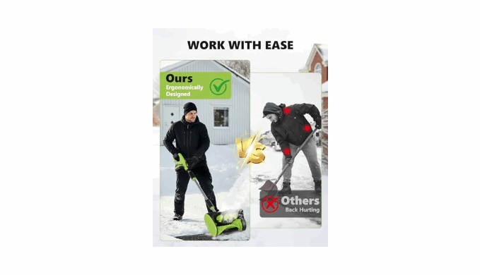 Ergonomic & Safe: Weighing just 9.9 lbs, this snow shovel features an ergonomic adjustable handle to reduce back strain, and it includes a dual-safety start button to prevent accidental startups.