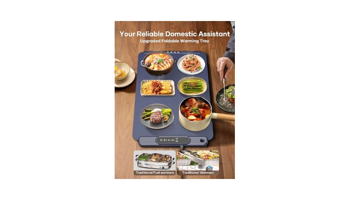 Foldable, Portable & Compact for Easy Storage: Warming mat for food is an ideal companion for your busy lifestyle. It easily rolls up to a compact size of 4.7\" × 15.4\" and weighs just 3.75 lbs, making it convenient to store in a bag. Its flexible, space-saving design ensures effortless storage and portability. Ideal for offices, camping trips, and outdoor dining, where keeping food warm is essential.