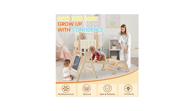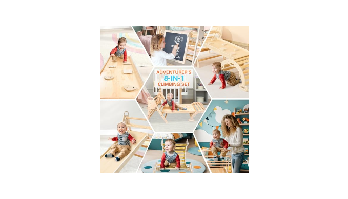 【All-in-One Play】:2024 Unlock your child\\\\\\\'s potential with the 8-in-1 Pikler Climbing Set, a versatile Baby Climbing Gym. With dual-handrails, it promotes climbing, creativity, and exploration. Easily transform it into a tent or slide, and use the included two-sided board for artistic expression. This Climbing Set sparks imagination and supports physical and cognitive growth.