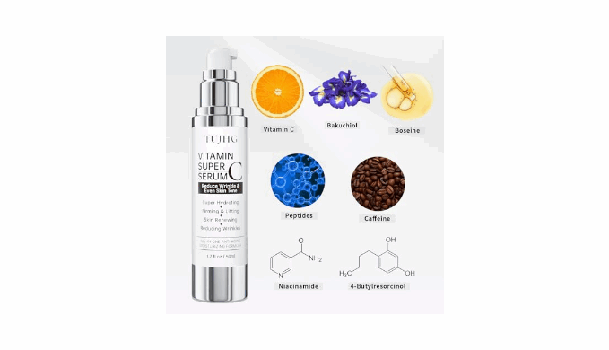 All-in-One Vitamin C Serum for Face – TUJHG vitamin c serum combines the power of hyaluronic acid, vitamin E, peptides, and collagen to deliver multiple benefits in one step. It deeply hydrates, smooths fine lines, improves skin texture, supports elasticity, and enhances natural radiance, making it an ideal anti-aging facial serum for daily use.