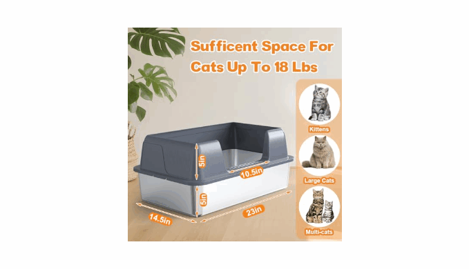 SPACIOUS FOR CATS UNDER 18LBS – This litter box measures 23 x 14.5 x 10 inches, providing ample space for cats under 18lbs to move, turn, and dig comfortably. Its roomy interior can hold enough litter for up to 30 days of use, making it a convenient choice for cat owners