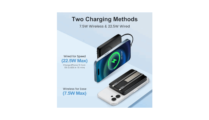Magnetic Power Bank for iPhone: This power bank features advanced magnetic technology, which allows the device to be securely attached to the power bank with just a gentle touch, enabling safe and efficient charging