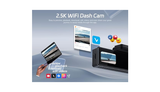 Built-in 2.4G WiFi & App Control: This compact dash cam front comes with an easy-to-use app for both Android and iOS smartphones, allowing you to live stream, download videos, adjust settings, and edit your footage with ease. Share your videos directly to YouTube, Twitter, Facebook, or any social media platform with just a tap, making it simple to share your journey with friends