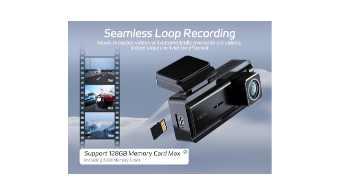 Smart Voice Control: The VYCOL Orbit 1 dash camera features voice control with 4 simple commands: Turn on recording, Turn off recording, Lock the video, and Take photos. Enjoy hands-free operation while driving, ensuring a safer and more convenient journey without the need for manual settings