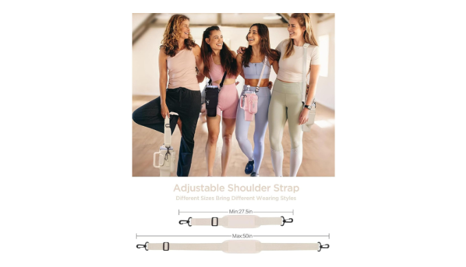 - Features a removable, padded shoulder strap adjustable from 27.5″” to 50″” for perfect fit across different body types.