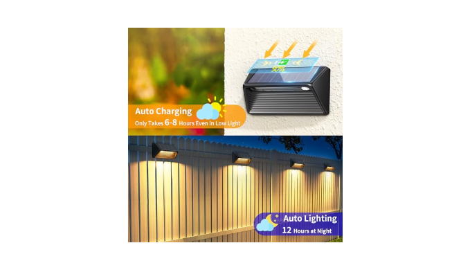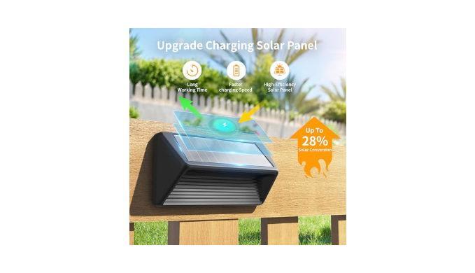 Upgraded Solar Panels & Long Working Hours: We have upgraded the solar panels, which are brighter and more efficient than other solar panels, with an energy conversion rate of up to 28%. Our fence solar lights are equipped with a large capacity 600mAh battery, capable of absorbing and storing more sunlight to convert into electricity. After being fully charged during the day for 6-8 hours, Solar deck lights can work for up to 12 hours at night
