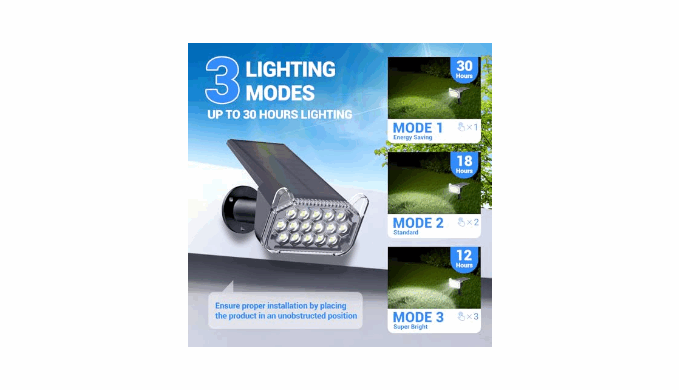 3 BRIGHTNESS LIGHT MODES: Cool white light - energy saving light mode (30hrs)/ standard light mode (15hrs)/ super bright light mode (12hrs). These solar spot lights outdoor feature a 1200mAh high-capacity battery that can stay lighted for up to 12-30 hours, depending on the amount of sunlight they get. Compared with other solar powered spotlights in the market, WdtPro solar spotlights will stay lit for longer, stay brighter, and are more durable