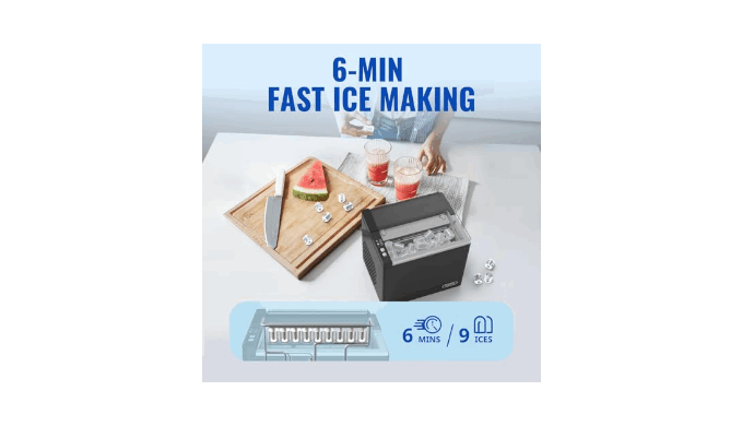 Fast and Efficient Ice Production: You can enjoy the first batch of 9 bullet-shaped ice cubes in just 6 minutes with the WETIE portable ice machine. With a powerful upgraded compressor, the countertop ice maker can produce up to 26 lbs of ice per day, ensuring you never run out of refreshing ice on any occasion.