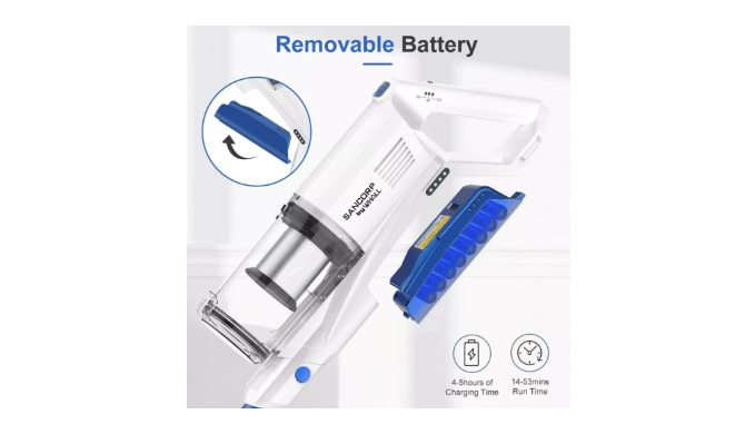 - The cordless design of the vacuum cleaner allows you to get rid of the trouble of cords and hold the cordless vacuum cleaner with one hand to clean. After replacing the multifunctional 2-in-1 brush, it can be quickly switched to a handheld vacuum cleaner which is very suitable for sofas, cars, keyboards, and gaps.
