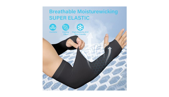 Comfortably Cool and Wicks Moisture: The sweat-wicking fabric generously lets air in, keeping your arms cool even in extreme heat. The more you sweat, the cooler these arm sleeves get. After soaking in water, they will be cooler when wearing