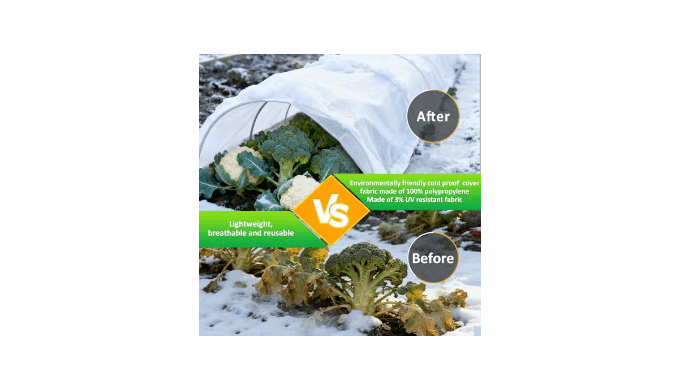 Light and durable frost cloth: Frost cloth plant freeze protectionmade of 100% polypropylene environment-friendly and cold proof non-woven fabric, the surface is treated with 3% UV resistance, which can adjust sunlight to prevent overheating, and has the characteristics of tensile resistance, tear resistance, and aging resistance, which can ensure that crops can safely survive the winter under severe weather conditions such as frost and cold waves