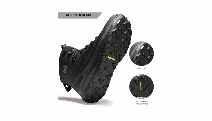 Dynamic Traction & Stormproof Protection Our proprietary sole design combines mud-shedding deep lugs, micro-grip texture, and a flex groove under the forefoot for natural stride motion. The TPU-wrapped shell locks out water like a fortress — tested waterproof for 4+ hours in torrential rain. Walk through puddles, not in them.