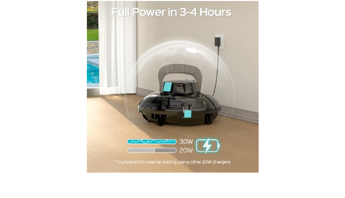 Cordless Convenience & Auto Stop Feature: Enjoy cordless operation with our pool cleaner , freeing you from tangled cords. The intelligent Auto Stop feature ensures graceful pauses when the battery is low or the cleaning task is complete, providing unmatched convenience and safety.