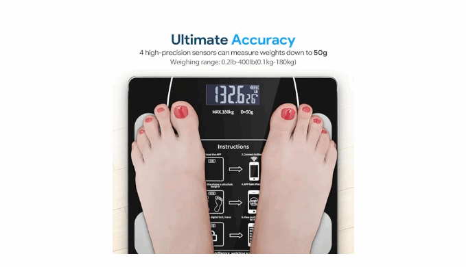 ✔️High Precision Sensors: It ensures accurate weight and body composition measurements for better health management. Equipped with advanced sensors, our digital scale delivers precise readings.