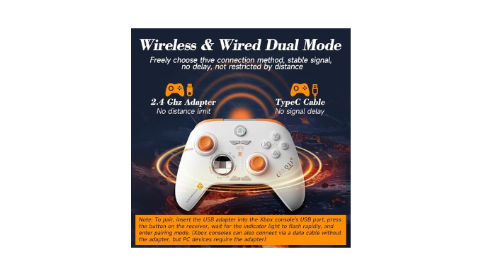 Plug and play with a 2.4GHz USB adapter or Type-C cable, seamlessly connecting to your Xbox console or PC.