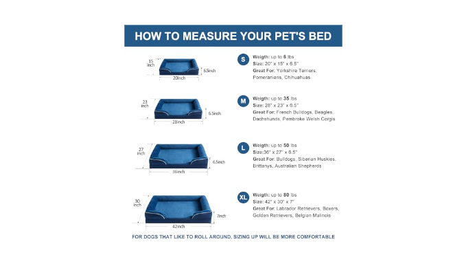 Size: (Dog beds for medium dogs) 28x23x6.5 inch dog bed medium size dog could load-bearing less than 35lbs .For dogs that like to roll around, sizing up will be more comfortable.