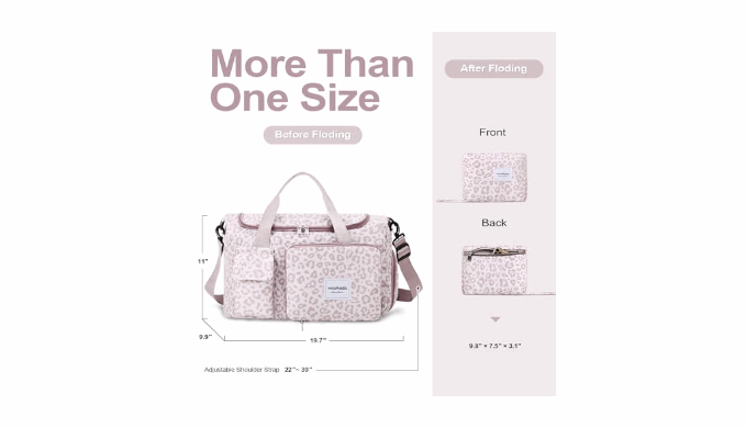 ✨Multiple Sizes and Travel Friendly: WOOMADA large capacity travel bag can be folded according to your needs. Portable folded size: 9.8×7.5×3.1inches (It is a good idea to put it in your luggage bag as an extra bag); Travel large capacity size:19.7×9.9×11inches(equipped with 22-39 adjustable shoulder strap). It can easily hold your clothes, shoes, laptop, books, toiletries, or cosmetics.