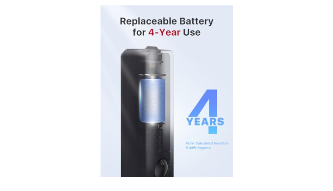 Extra Long Standby, Easy Setup: The replaceable battery offers a long 4-year lifespan based on 5 daily triggers; the alarm is 100% wire-free and easy to install using the double-sided tape included; following the in-app instructions, simply add it to the X-Sense app in seconds