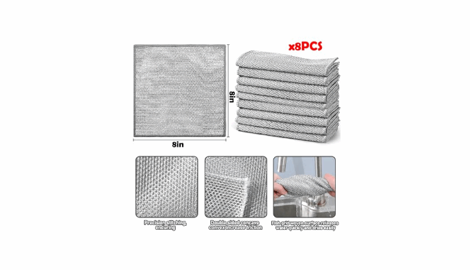 Package Included:Includes 8 pcs wire miracle cleaning cloths, size 7.8*7.8in.The quantity is enough, you can categorize the use of these cleaning cloths, some for cleaning tableware, some for cleaning kitchen equipment, some for cleaning fruits, etc.XANGNIER has always been committed to providing high quality products, you can always consult us if you have any questions.
