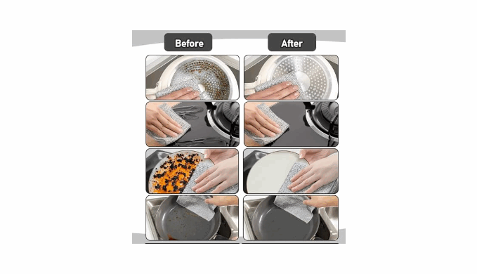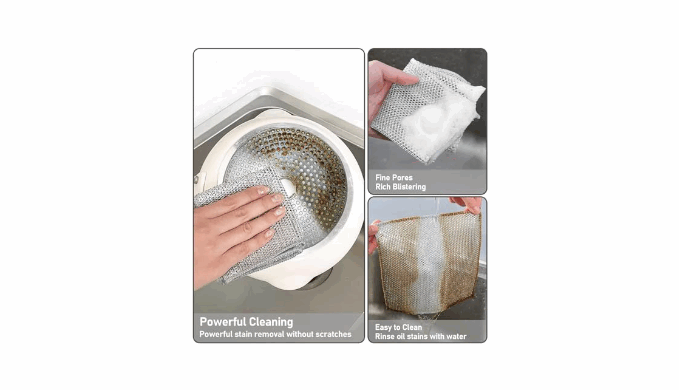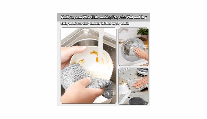 Have you ever had trouble changing your cleaning tools frequently to clean different kinds of dishes and kitchen equipment? Our multipurpose wire dishwashing rags for wet and dry can help you solve this problem. Reusable, highly absorbent, easy to remove grease, non-scratch and fast drying.