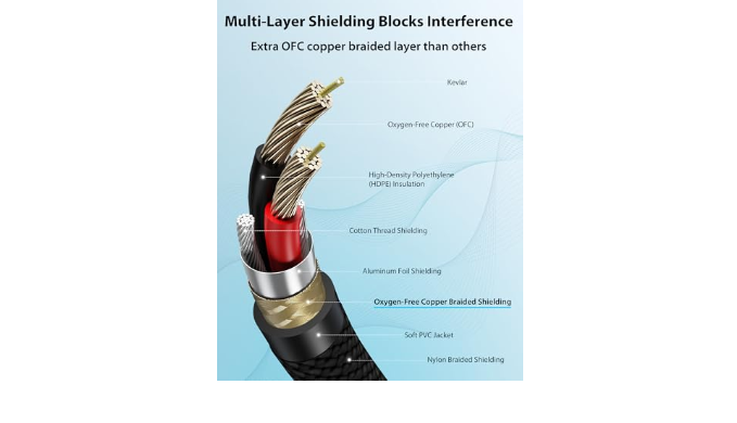 [Multiple Shielding Against Interferenced] This professional microphone cable 10ft features a five-layer shielding structure. We include an extra layer of OFC braided copper shielding, providing superior protection against interference from surrounding equipment and power sources. Whether in the studio or on stage, this ensures clear, noise-free audio transmission, delivering better recording and performance quality in complex environments.