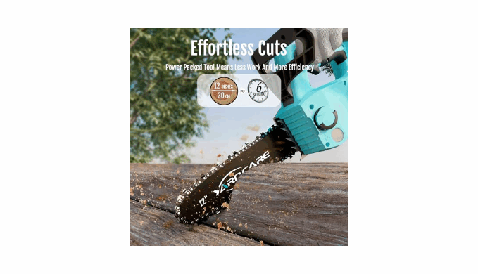 [Tool-Free Chain Tension Design] 12Inch Battery Chainsaw uses a convenient knob to adjust the chain tension, allowing precise adjustment without tools. Equipped with a 30cm (12-inch) high-performance guide and professional-grade cutting chain, the 1.3mm (0.050-inch) chain pitch design not only ensures stable cutting, but also applies to a wide range of work scenarios, from fine pruning to thick wood cutting.