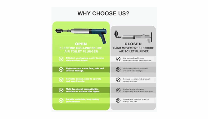 【Safety Use】 Safety is our top priority! The Electric Plunger features anti-misoperation switches and pressure relief valves for reliable performance.Trust in its safety features and enjoy hassle-free operation.