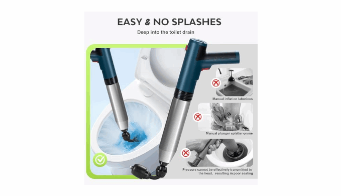 【Time-Saving & Cost-Effective】The Electric Toilet Plunger offers ultimate time-saving convenience! With just 1 minute of pressurization, it efficiently unclogs toilets, sinks, and drains, eliminating the need for traditional plunging methods, Invest in our electric plungers for bathroom, which save you money in the long run by preventing costly plumbing repairs.