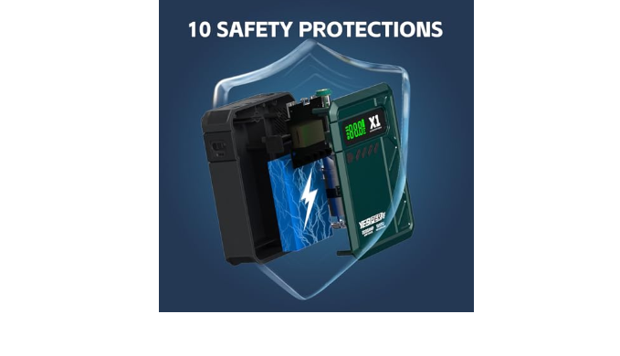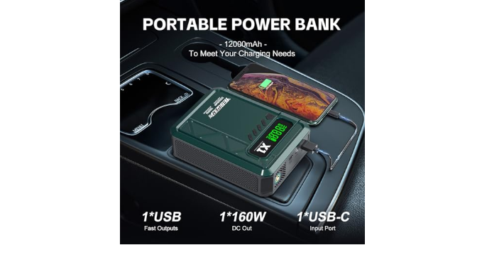 Powerful Car Battery Jump Starter: YESPER X1 portable jump starter with air compressor adopts QDSP technology to increase the starting capacity by 3 times. Through the disruptive innovation of battery/component structure, the booster pack jump starter reduces the starting temperature and equalizes the temperature to ensure safe starting