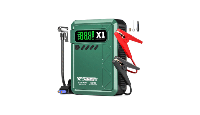 Powerful Car Battery Jump Starter: YESPER X1 portable jump starter with air compressor adopts QDSP technology to increase the starting capacity by 3 times. Through the disruptive innovation of battery/component structure, the car battery jump starter reduces the starting temperature and equalizes the temperature to ensure safe starting