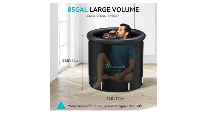 High Quality Material: Yitahome cold water therapy tub is engineered from multiple layers of robust, waterproof and tear-resistant materials,this freestanding cold plunge features a PVC inner layer, Nylon outer layer and the middle layer is Pearl Foam. The recommended temperature for cold water immersion is below 50°C