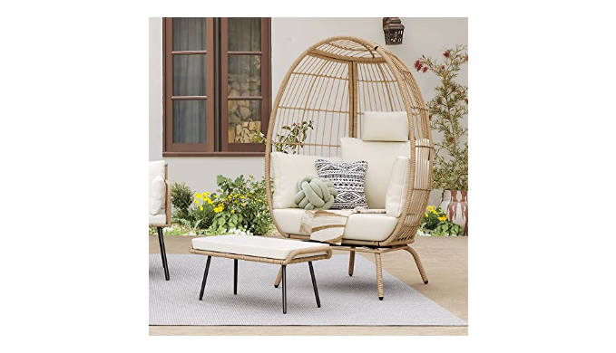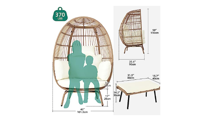 Easy Assembly & Maintenance: The package includes 1 x Egg Chair and 1 x Ottoman. With all necessary accessories, hardware, and a detailed manual provided, assembly is a breeze for two people within 30-45 minutes. Additionally, the removable cushion covers allow for easy cleaning, ensuring a neat appearance at all times.