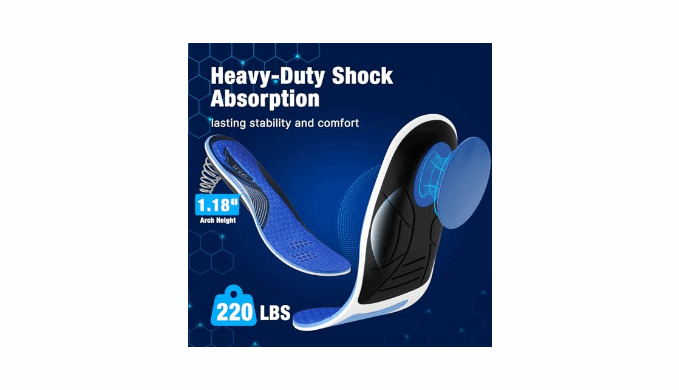 HEAVY-DUTY SUPPORT INSOLES: Built for men and women over 220 lbs, these 1.18\" arch support inserts offer powerful stability and proper alignment for all arch types. They evenly distribute pressure, absorb shock,and reduce fatigue. Ideal for plantar fasciitis, heel spurs,metatarsalgia, over-pronation, shin splints, bunions, and Morton’s neurom