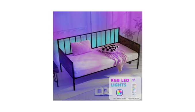 Vibrant RGB LED Lights: The led daybed frame is equipped with RGB LED lights, simply turn on the power to enjoy a rich and colorful lighting experience. The LED lights create a cozy and relaxing atmosphere perfect for bedtime reading or unwinding.