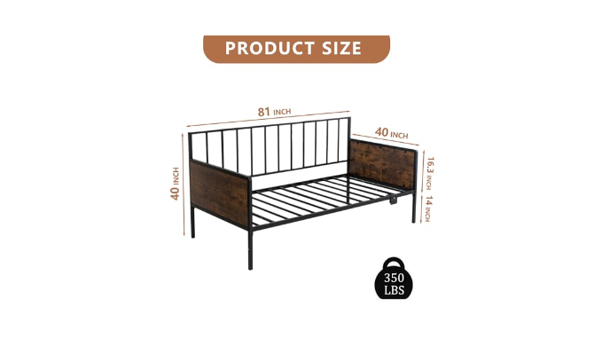 Strong Weight Capacity: Crafted from a robust metal frame structure, this metal daybed can easily support the weight of adults. The high-quality heavy-duty steel slats ensure mattress support, preventing sagging and extending the lifespan of your mattress.