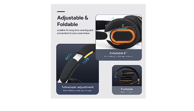 [Comfortable and Foldable Design] The Over-Ear Headset are designed for long-term comfort. Our headphones are foldable and adjustable, which make sure better sound experience and let the user immersed in the full sound. The headset is sutiable for home, office, school, travel, and sport by Unisex Kids, Teens and Adults.
