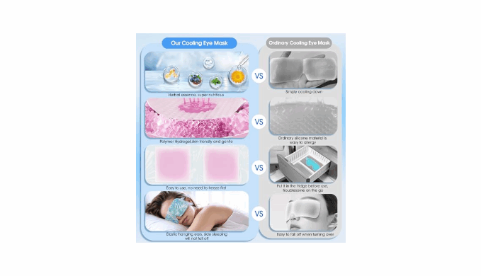 PERFECT EYE CARE:Our self-cooling cold eye mask provides a quick and gentle cooling sensation,effectively relieving tired,dry,sore eyes,watery,burning,itchy,swollen or inflamed eyelids.In addition,cooling eye masks has a good relief for puffy eyes,eye bags,dark circles and enhances the elasticity of the skin around the eyes.Relieves migraines and helps you relax and feel refreshed.