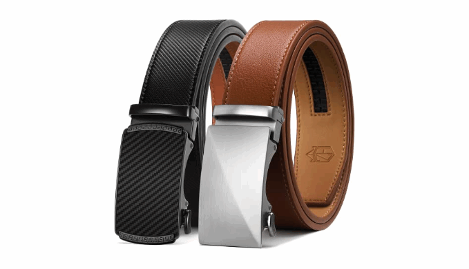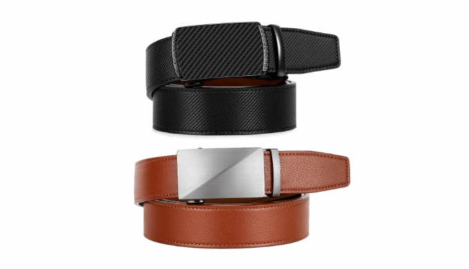 EASY TO USE BELT FOR MEN-Just slide the dress belt into the sliding buckle and pull leather belt through,the ratchet buckle auto-locks.To release the ratchet belts,gently push the release lever on the side of the automatic buckle and lock will snap. Simple,smooth and sleek