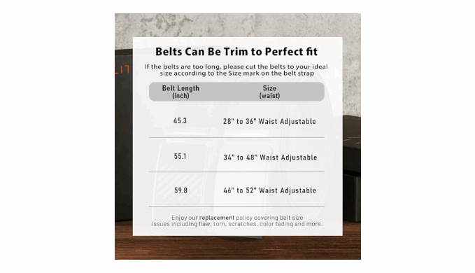 SATISFACTION: Please rest assured that you can easily access to our customer service and enjoy our replacement policy covering belt size, issues including flaw, torn, scratches , color fading and more
