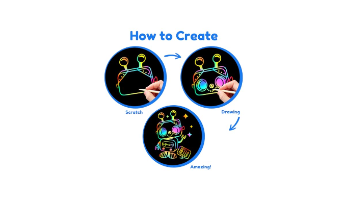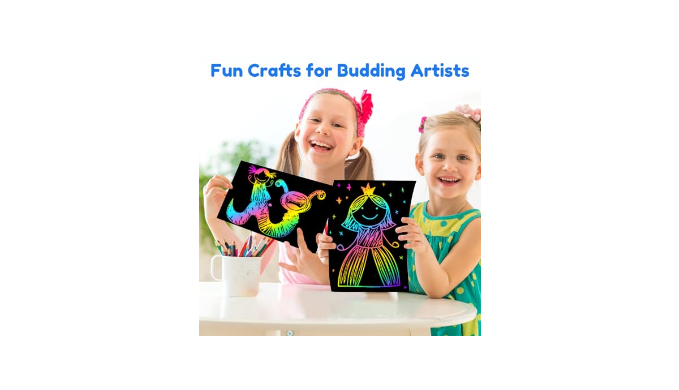 Arts And Crafts Supplies - Just scratch off the black coating on the drawing paper, and rainbow lines will appear. Children can also use the stencils to design more cute and funny shapes on the scraped paper to create colorful craft paper artworks. Best birthday party crafts for kids.The scratch paper art supplies for kids 3-5.